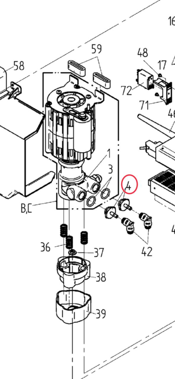 33.2587.3000 Ниппель водяной помпы WMF 5000s в комплектке с уплотнителем 33.0395.5000 O-Ring 17,12*2,62